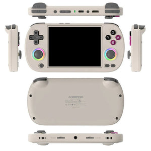 Evolutie van de succesvolle RG35XX H met een groter scherm en coole rgb led verlichting rond de analoge sticks.