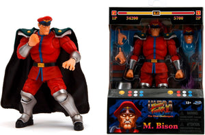 De M. Bison actiefiguur uit Street Fighter 2 van Jada Toys is een krachtige en imposante weergave van de beruchte dictator en eindbaas uit de iconische vechtspelserie. Deze gedetailleerde figuur vangt M. Bison's kenmerkende uitstraling, met zijn rode uniform, militaire pet en dreigende houding. Dankzij de meerdere articulatiepunten kun je M. Bison in verschillende intimiderende poses zetten, inclusief zijn beroemde Psycho Crusher-aanval. De figuur wordt geleverd met verwisselbare handen en energie-effecten, zodat je zijn kenmerkende krachten kunt nabootsen. Voor fans van Street Fighter en actiefigurenverzamelaars is deze M. Bison-figuur een essentiële toevoeging die de dreiging en macht van deze klassieke schurk perfect tot leven brengt.