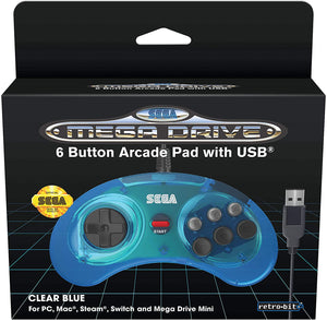Retro-Bit Sega Mega Drive 6-button USB controller clear blue