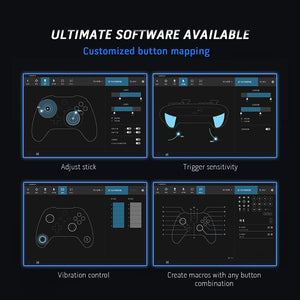 Sluit vrijwel elke draadloze controller aan op je Nintendo Switch, Windows-pc's, Mac, Raspberry Pi en meer. Ultimate Software is nu compatibel met de 8BitDo USB Wireless Adapter 2. Met Ultimate Software heb je controle over elk onderdeel van je controller: pas de key mapping aan, pas de stick- en triggergevoeligheid aan, regel de vibratie en maak macro's met elke toetscombinatie. Er kunnen 2 profielen worden aangemaakt waartussen kan worden geschakeld.
