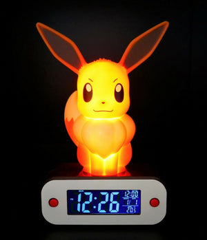 Je favoriete Pokémon Eevee verspreidt zacht licht met zijn lichtverspreiders. Het verlichte display toont digitaal de tijd, datum en kamertemperatuur. De programmeerbare alarmfunctie is inbegrepen. Deze draadloze lichtwekker werkt op batterijen (3 x AAA, niet inbegrepen) of USB/Micro USB-voedingskabel (inbegrepen). Officiële licentie.