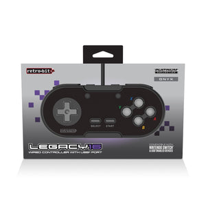 Retro-Bit®'s Platinum-serie controllers is gewijd aan klassieke retro-gaming en biedt ultieme veelzijdigheid voor elk gamegenre. De Legacy16 USB®-poortcontroller is gemodelleerd naar de SNES®-controller en heeft een klassiek gevoel, maar is opnieuw ontworpen om plaats te bieden aan Home- en Screenshot-knoppen, extra ZL- en ZR-schouderknoppen en een kabel van 3m. Deze hoogwaardige controller is gebouwd met D-input- en X-input-ondersteuning om vloeiend te spelen op Switch, Steam®, PC/Mac® en Raspberry Pi, zodat je echt een moderne manier van retro-gaming kunt ervaren met een vernieuwing van een klassieker.